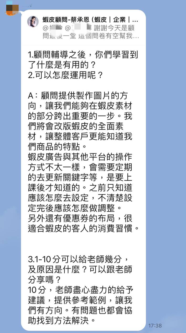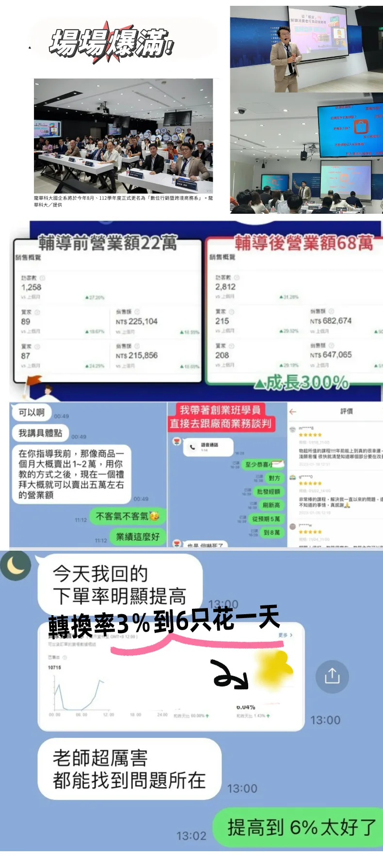 3年前我創立了【簡單粗暴蝦皮學院】,是一位蝦皮實戰營運顧問,更是台灣多所大學的品牌行銷受邀講師。目前已協助超過「50家」電商零售品牌,營業額增長都超過「30%」以上!更幫助將近10家品牌,打造月營收百萬以上的蝦皮賣場,而且營收都在持續穩定的成長中!